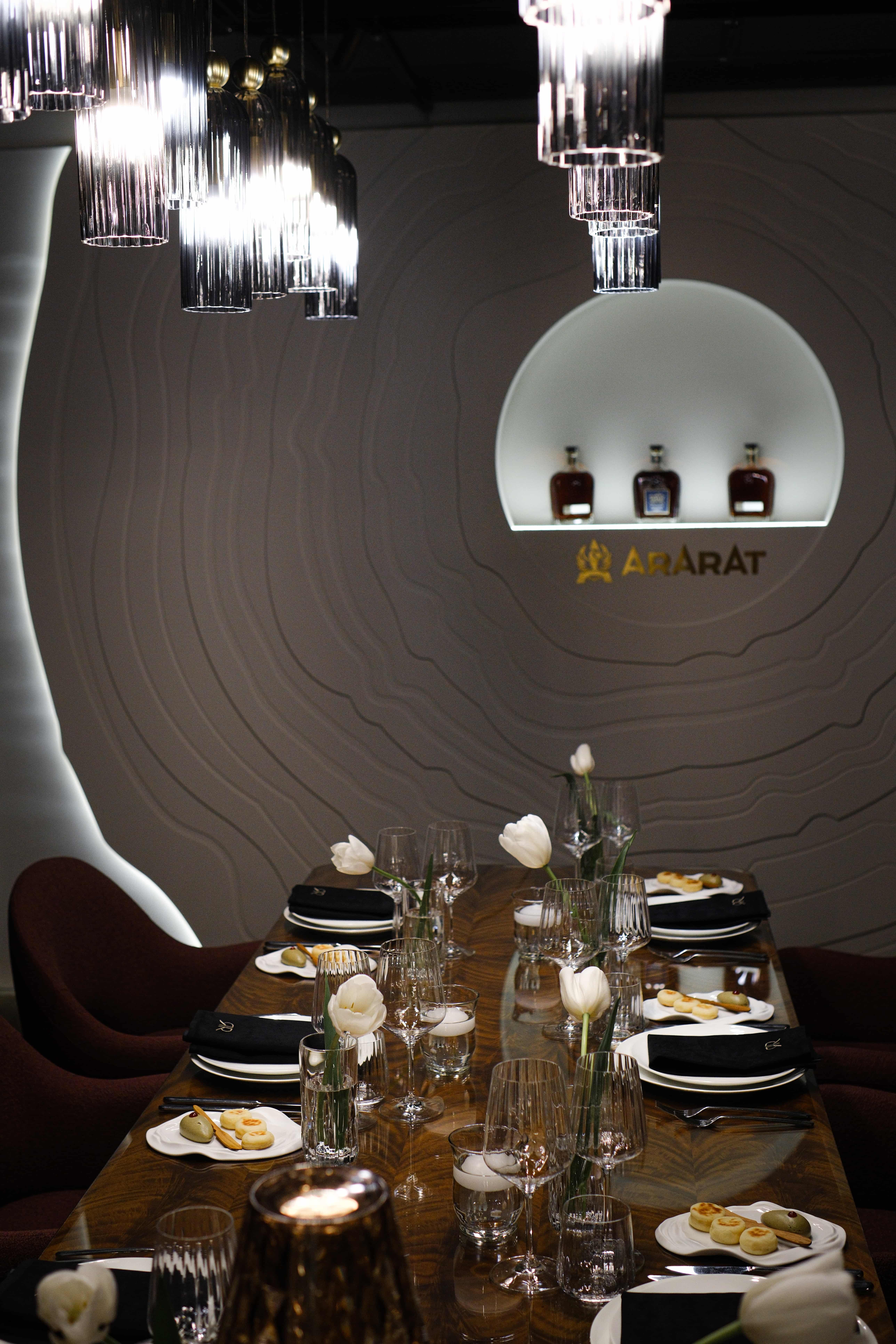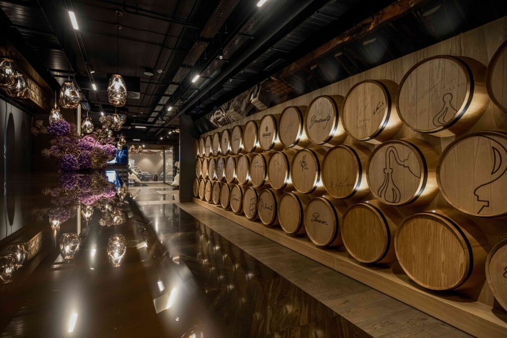 The interior of the restaurant offers a nurturing environment of comfort and heartfelt warmth. Prestigious tables, sparkling chandeliers, and scrumptious dishes create conviviality, while soft lighting adds an intimate and cozy atmosphere. Panels with national ornaments adorn the walls, the word "Father" is inscribed in various languages, and barrels of Ararat cognac add a distinctive touch. Guests can purchase each barrel, creating their own personal supply of this sunny beverage, perfect to enjoy alone or share with friends. In the evenings, musicians create a soulful atmosphere infused with Armenian flavor.