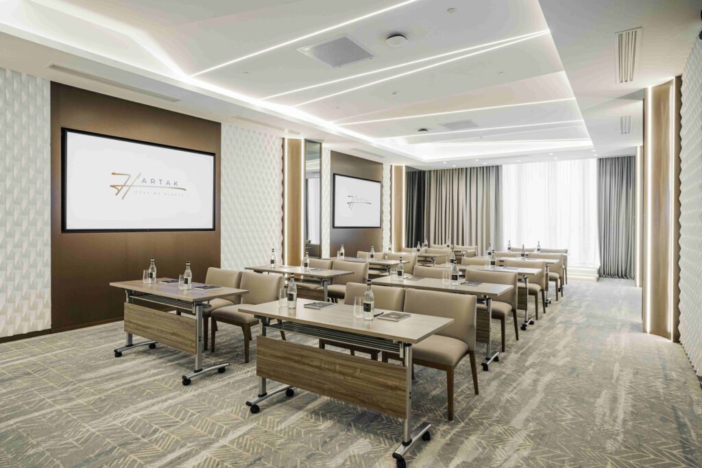 Since May 9, 2024, Hartak Meeting Places by Seven Visions Resort & Places, The Dvin has been Yerevan’s premier destination for business events. Featuring 12 versatile, fully equipped conference rooms for 2 to 500 participants, Hartak is ideal for executive meetings, workshops, corporate galas, and international summits.