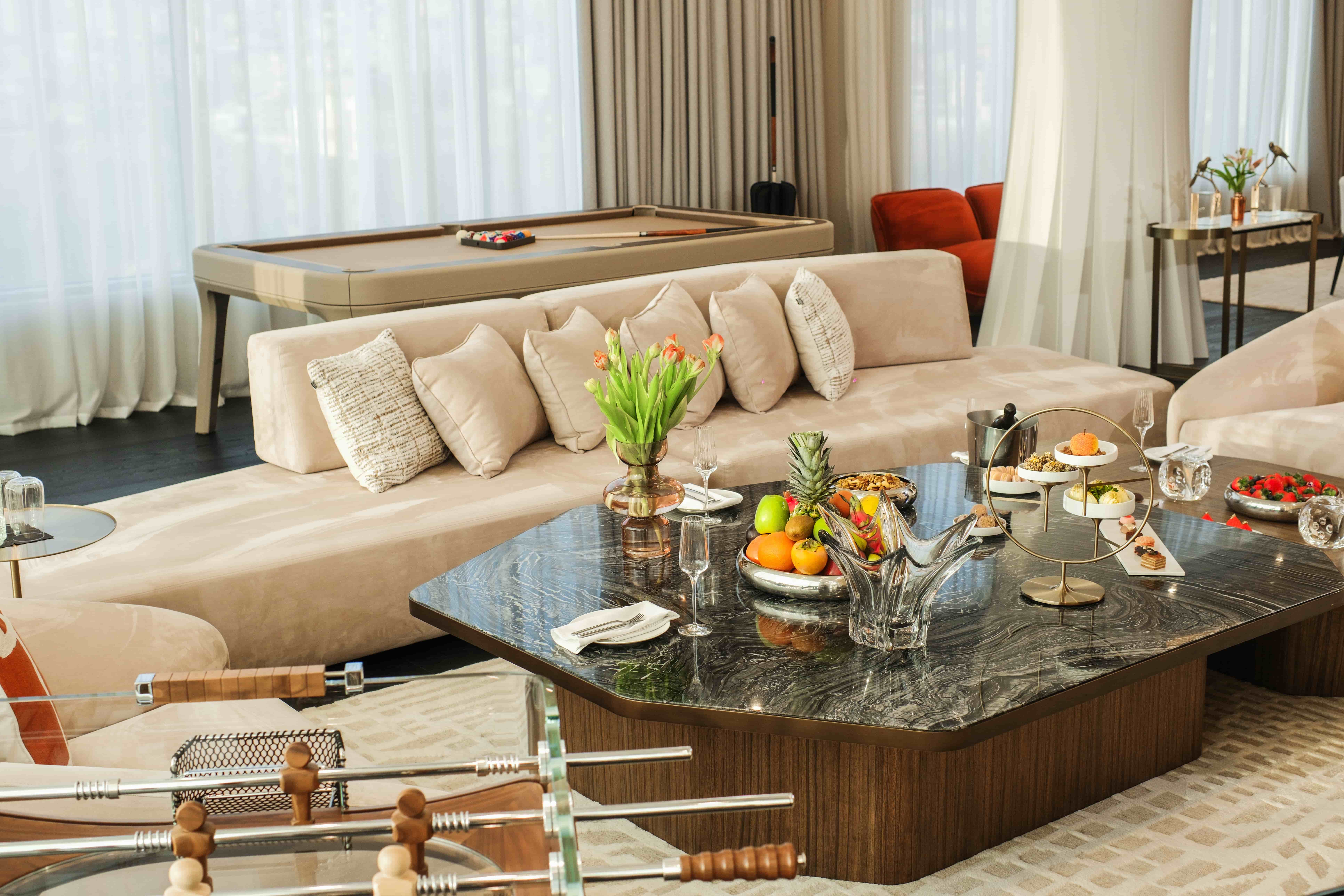 At Seven Visions Resort & Places, The Dvin, our Room Service is available 24 hours a day, 7 days a week, bringing exceptional food and drinks straight to your room. Whether you want a hearty breakfast, a light lunch, or a full dinner, everything is served perfectly so you can enjoy fine dining without leaving the comfort of your apartment.